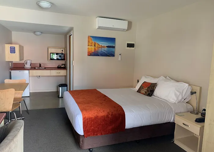 Certain units at this Wanaka hotel comprise a storage space and a balcony, and offer blackout curtains, a fan and air conditioning for your convenience. Timber furniture including a writing table are featured.